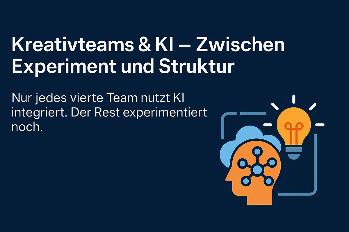 Die aktuellen Ergebnisse des KI-Reifegrad-Checks zeigen deutlich, dass die meisten Kreativteams sich noch in einer frühen Phase der KI-Adaption befinden. Fast die Hälfte der Teams (47 Prozent) nutzt KI spontan und individuell, ohne gemeinsame Strategie oder definierte Prozesse. Mehr als die Hälfte (51 Prozent) arbeitet generell ohne klaren Kreativprozess, was eine systematische Integration der Technologie erschwert. Insgesamt zeigt sich ein Bild von hoher Offenheit und Experimentierfreude, aber geringer struktureller Reife. Um das Potenzial von KI wirklich auszuschöpfen, braucht es nun klare Prozesse, regelmäßigen Wissensaustausch und eine strategische Einbettung in die kreative Arbeit.